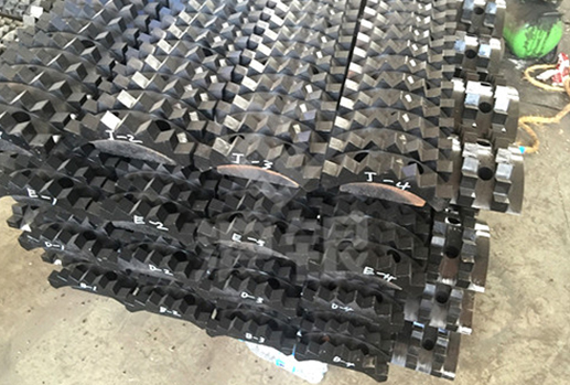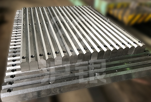 剪板機的刀片材質一般有T10、9CrSI、6CrW2Si、Cr12MoV 、H13,合金鋼等幾種材質。